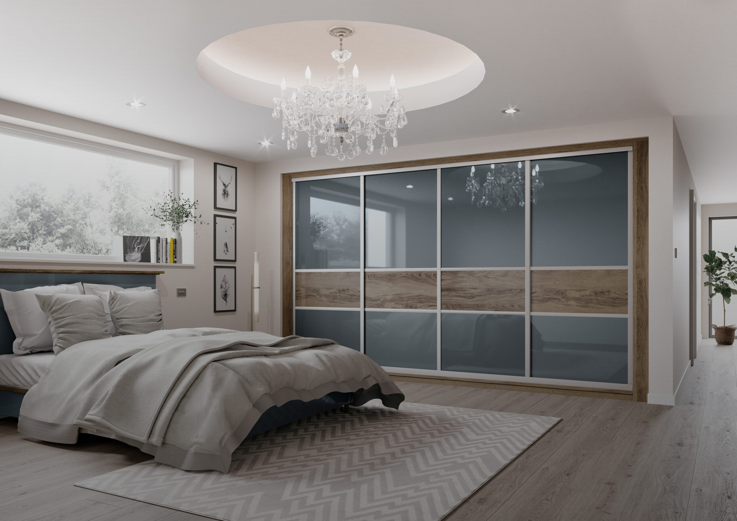 We have a wide range of wood finishes & painted safety backed glass & mirrors which you can choose. We also have a range of finishes for the trims around the sliding door wardrobes. Try our online sliding door wardrobe colour visualiser here.