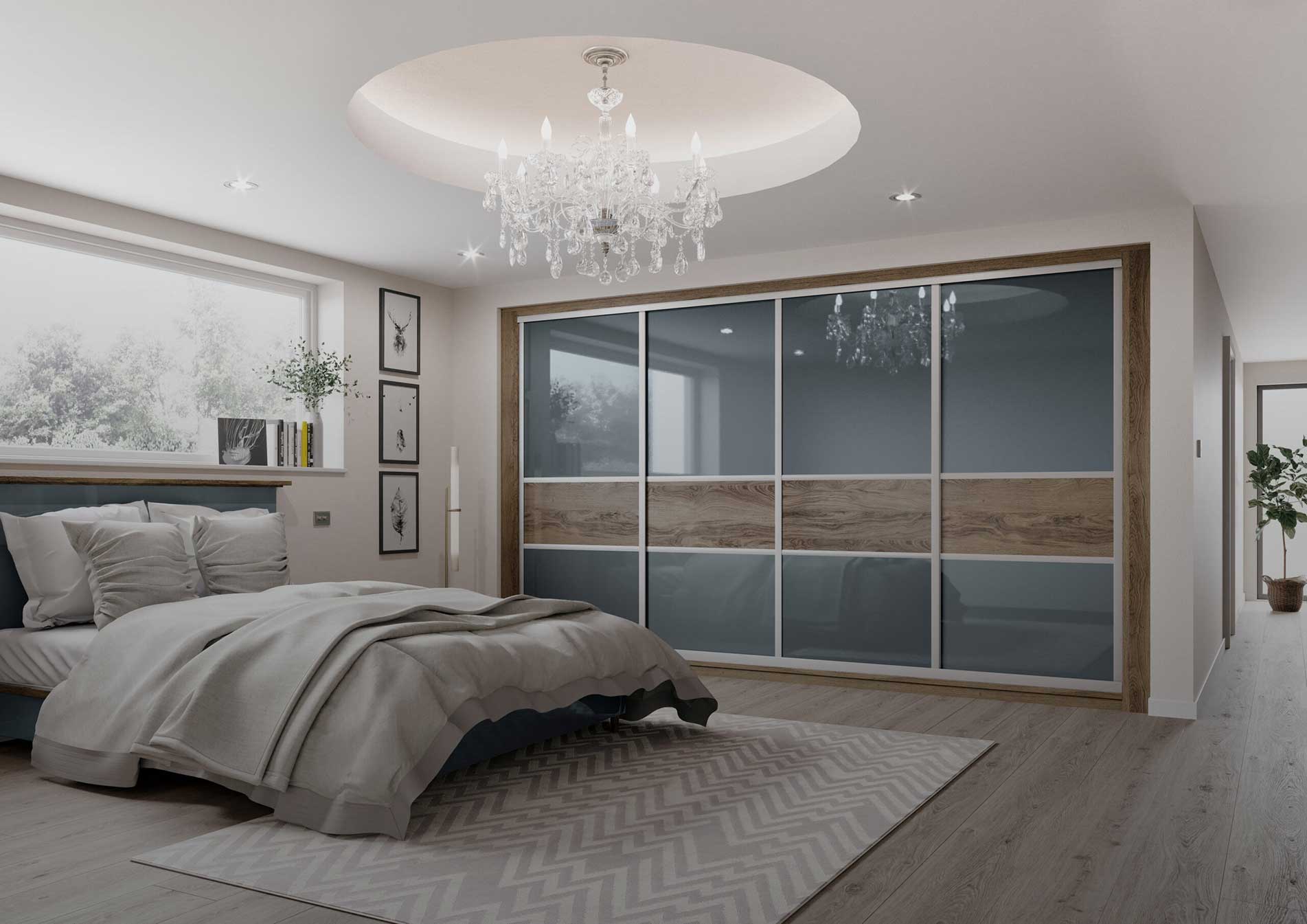 We have a wide range of wood finishes and painted safety backed glass and mirrors from which you can choose. We also have a range of finishes for the trims around the sliding door wardrobes. Try our online sliding door wardrobe colour visualiser here.