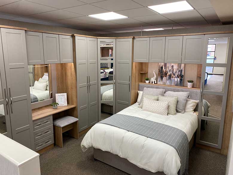Our Portadown showroom has three stories to explore with a wide range of fitted bedroom furniture on display. Choose from beautiful ranges including made to measure fitted bedrooms and modern Sliding Wardrobes. Not to mention, our Portadown store is great if you’re looking for freestanding furniture and beds.