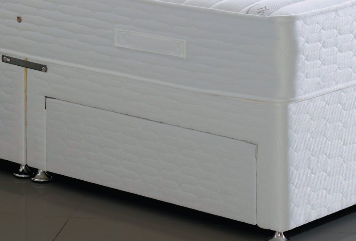 Customise your Dream Master Divan Bed further with our versatile storage options. Opt for a sleek and minimalist appearance with No Drawers, or enhance functionality with 2 Drawers or 4 Drawers configurations. For those desiring ample storage space without compromising on style, the 4 Drawers Continental and Ottoman Base options are available.