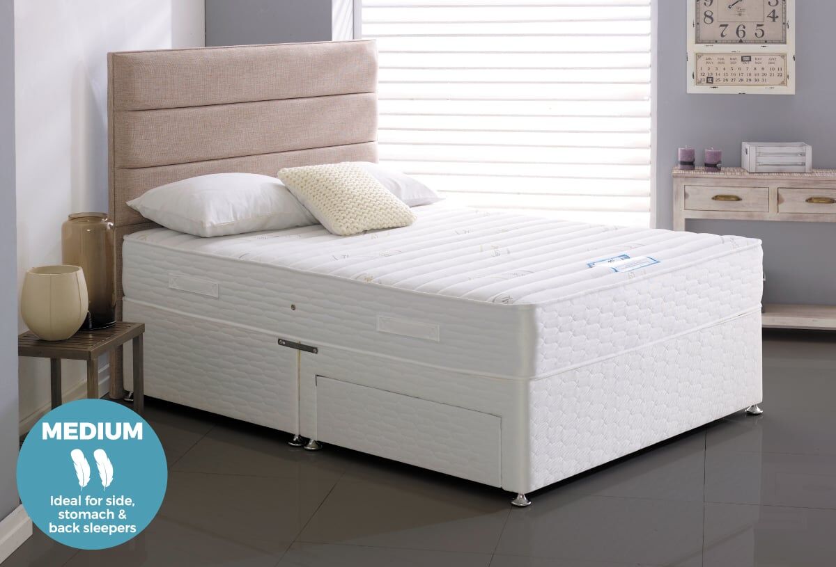 Transform your sleep space into a haven of elegance with the Dream Master Divan Bed, a brilliant offering from Starplan. Crafted to redefine comfort, this exquisite divan is available in a range of sizes catering to your specific needs: 3’0 Single, 4’0 Small Double, 4’6 Double, 5’0 King, and 6’0 Super King.