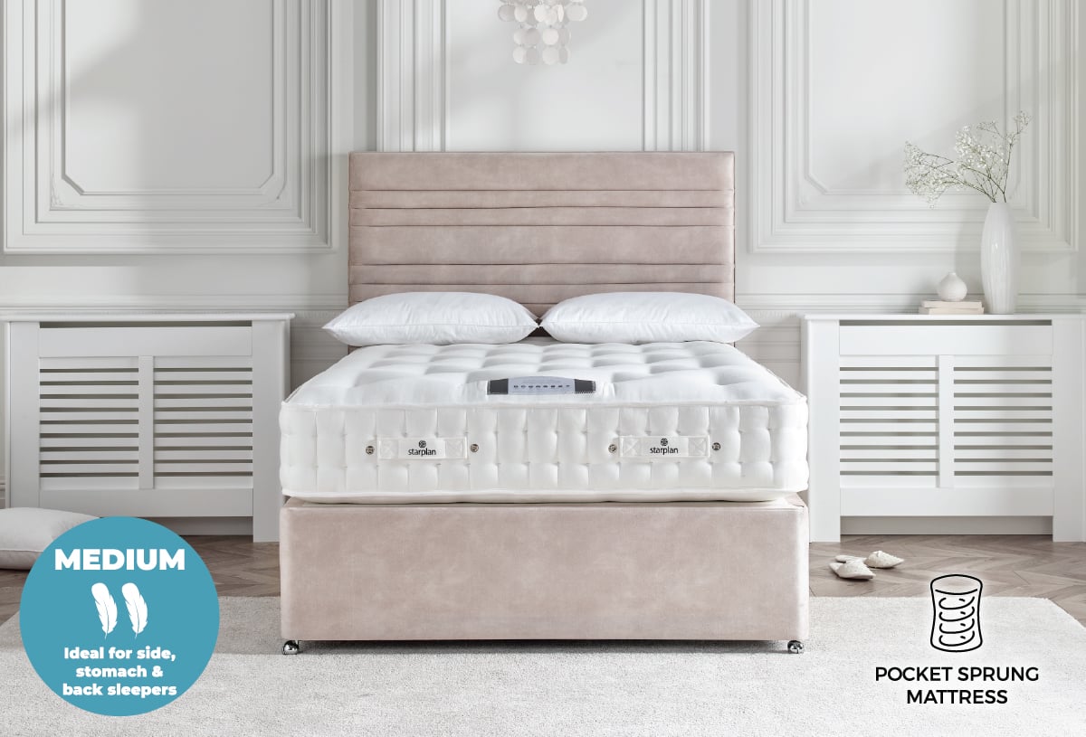 Crafted with meticulous attention to detail, The Sanctuary Divan Bed not only ensures a restful night’s sleep but also serves as a focal point for your bedroom. Elevate your space with the perfect fusion of opulence and functionality, transforming your bedroom into a haven of comfort and style. Upgrade to The Sanctuary Divan Bed – where every detail is designed for your utmost comfort and exclusivity, exclusively at Starplan.