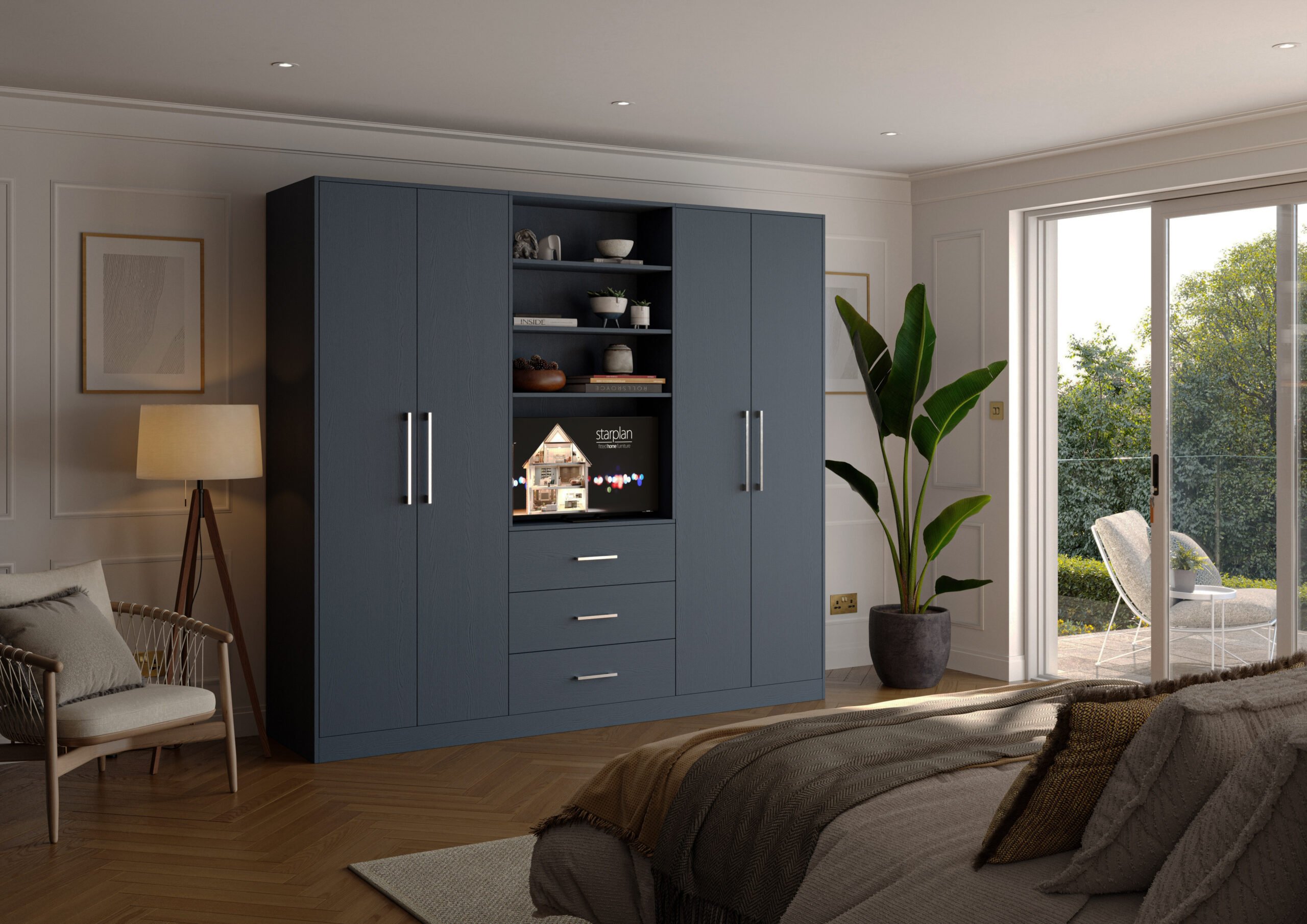 This 2.4m wide bedroom unit offers ample room to store your essentials, featuring a 2400mm wide 4-door wardrobe equipped with double hanging options, including 3 drawers and shelves. Choose your preferred internal storage configuration, with options for shelving or double hanging, giving you full control over how to best organise your belongings.