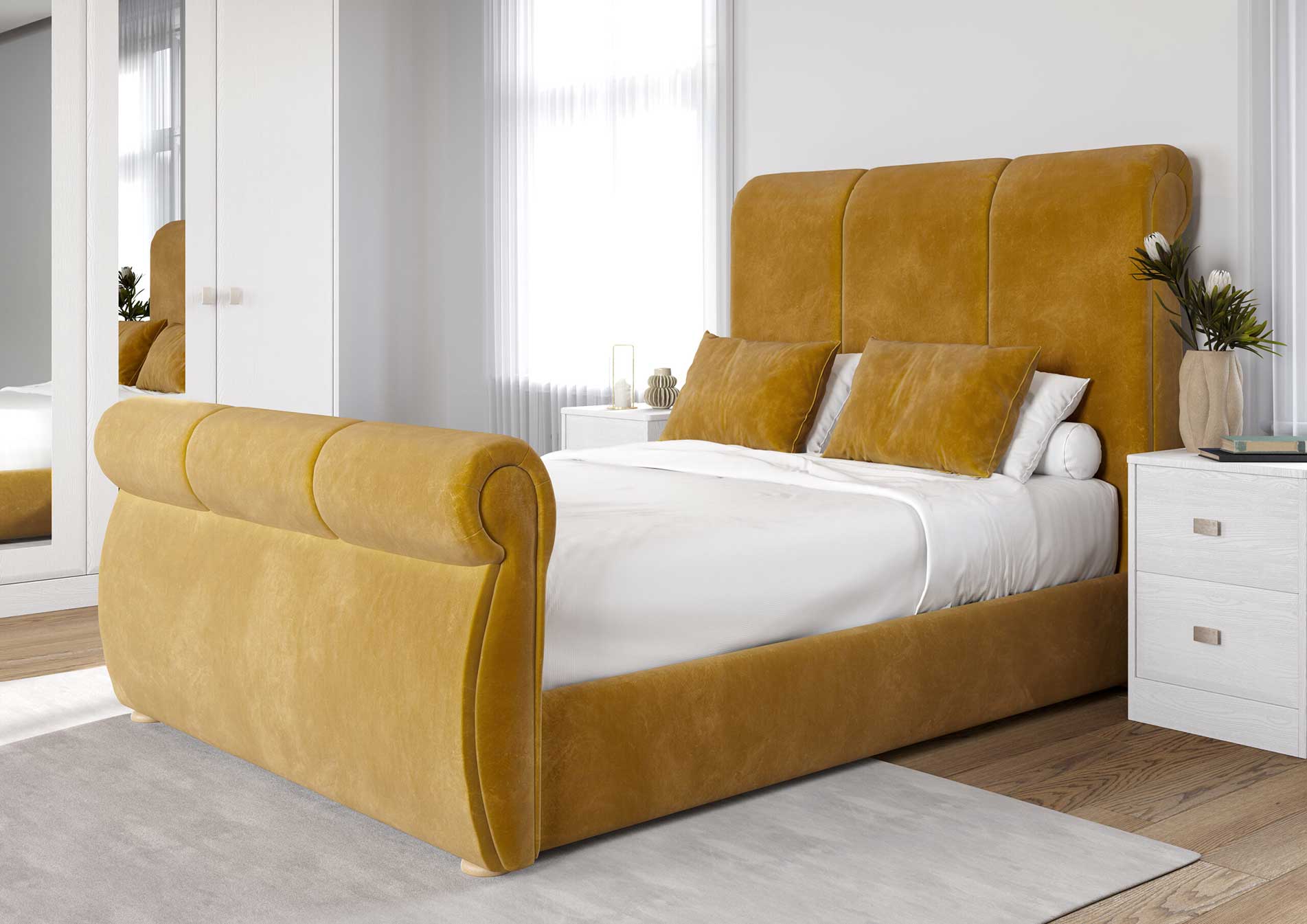 Experience our stunning Canterbury bedframe in our Corn finish
